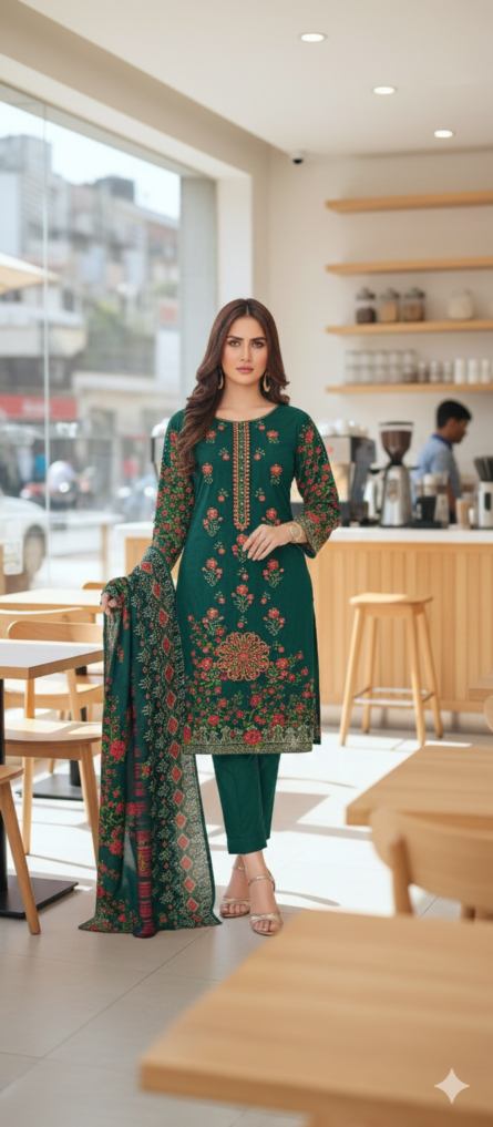 SSA-BA870 EMBROIDED 3PC KHADDAR WITH PRINTED DUPATTA