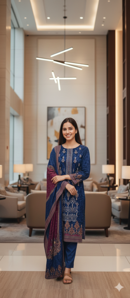 SSA-BA834 EMBROIDED 3PC KHADDAR WITH PRINTED DUPATTA